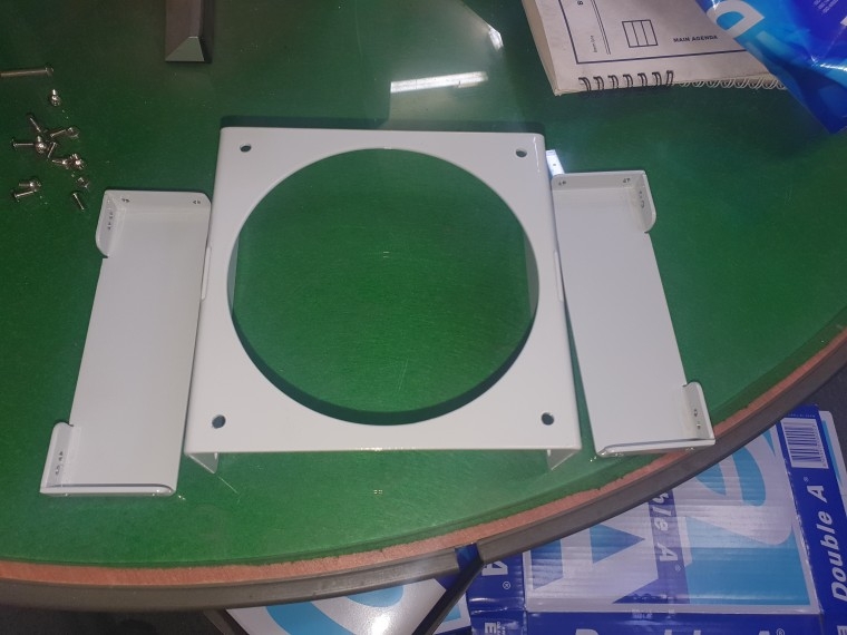 팬 자리보고 대충 같은자리에 조립하면 되겠다 하고, 케이스 살때 받아놨던 O11 도면에 맞춰 팬케이스를 만든후 탭까지 내고 모서리 열심히 갈아주고 칠까지 완료