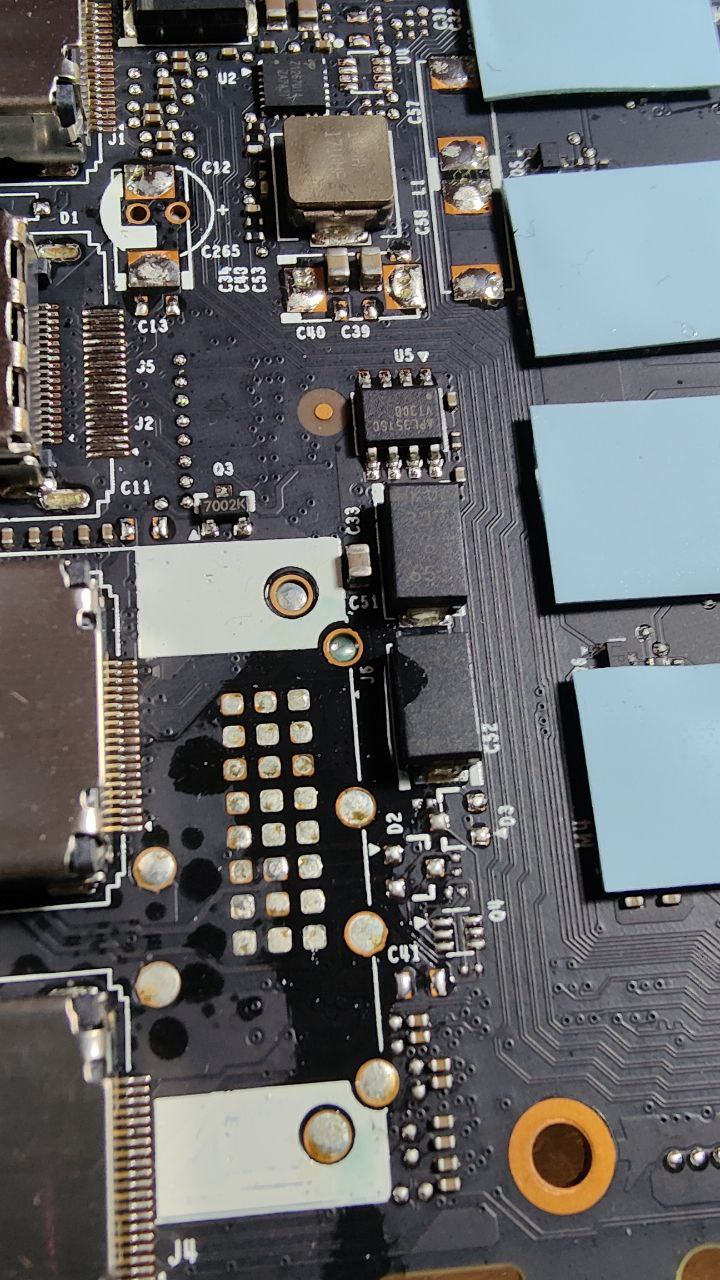 혹시나 싶어 앞뒤 판을 제거하니 역시나 기판에도 냉각수가 올라가 있네요.